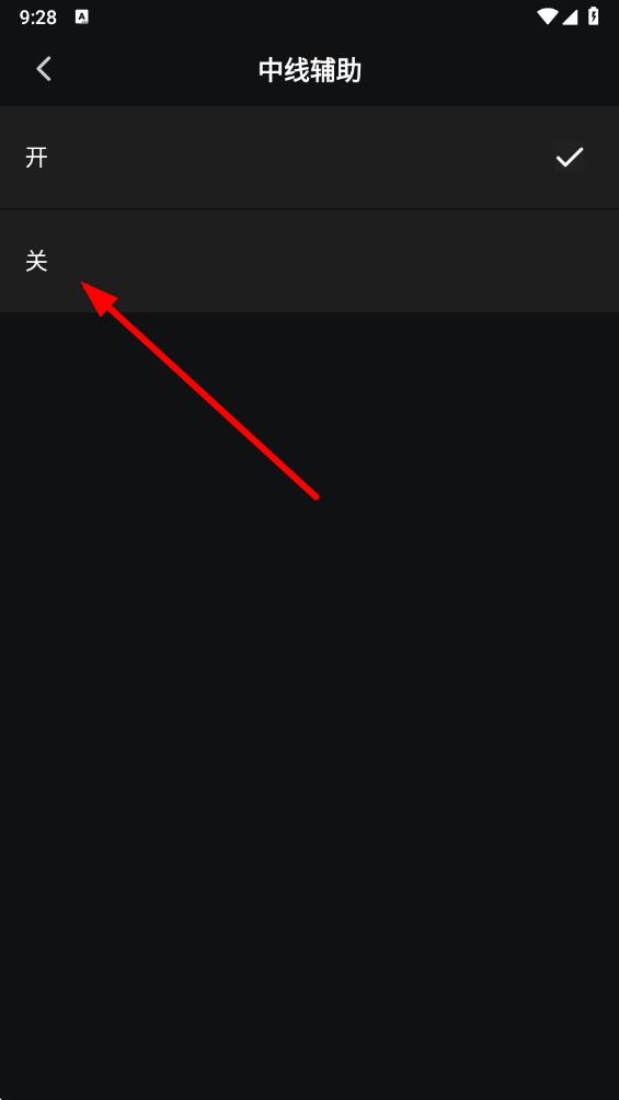4、在中線輔助設(shè)置頁面,點擊關(guān)選項,即可成功關(guān)閉中線輔助功能。