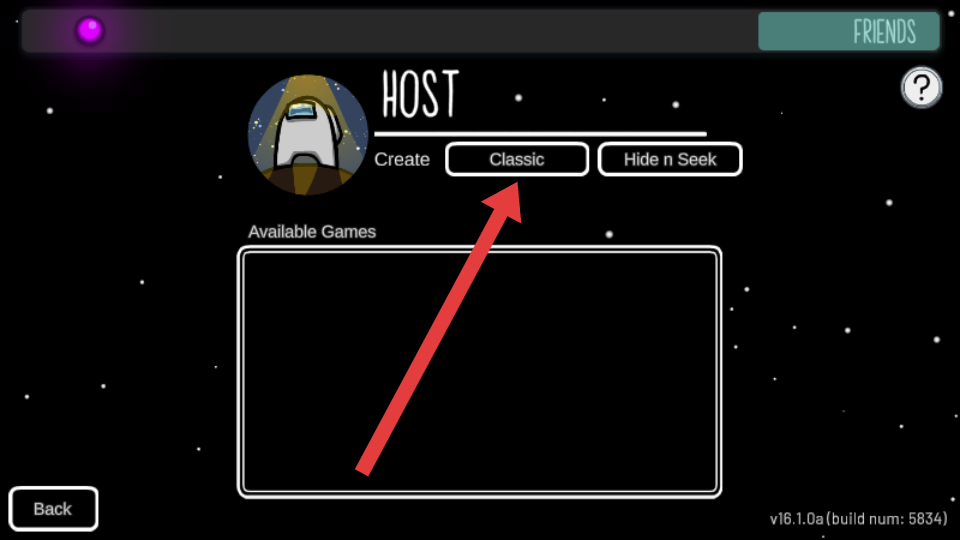 2、進(jìn)入房間創(chuàng)建頁(yè)面,看到Create欄下有Classic,HideinSeek等模式,選擇Classic經(jīng)典模式,以最基礎(chǔ)的游戲規(guī)則來(lái)搭建對(duì)局。