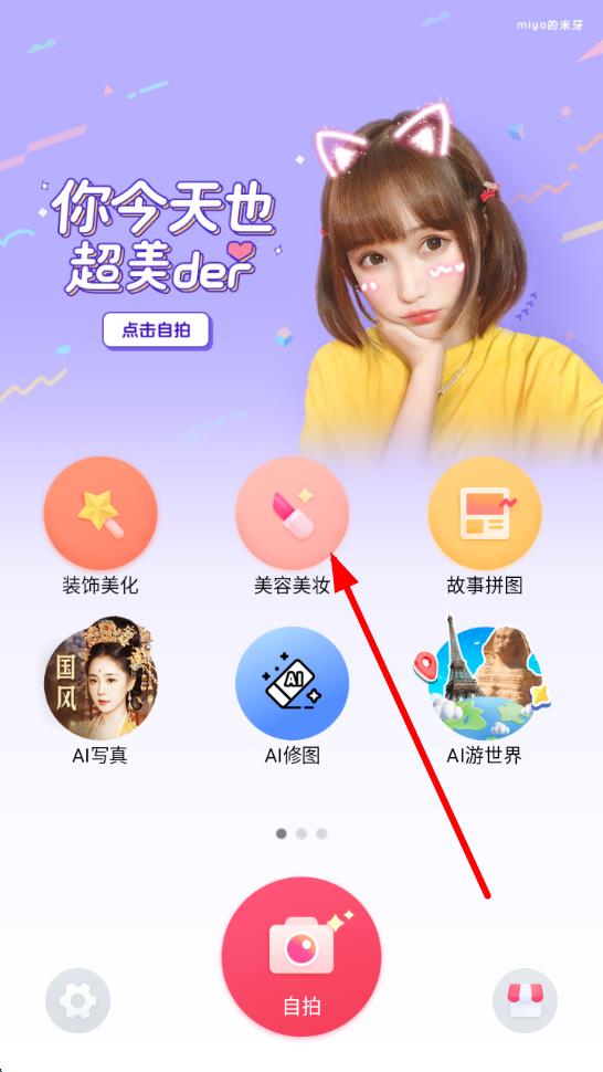 1、打開天天P圖應(yīng)用,在主界面點擊美容美妝圖標,進入修圖準備界面。
