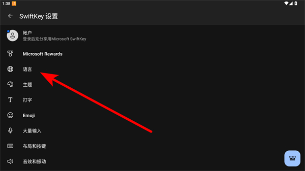 1、進(jìn)入SwiftKey設(shè)置界面,點擊語言選項。