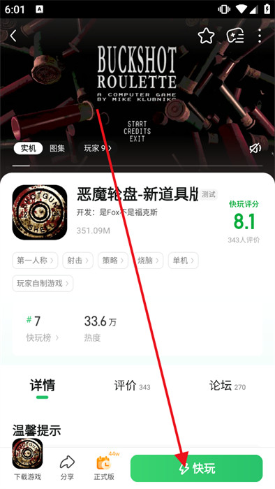 4、最后,在詳情頁(yè)最下方點(diǎn)擊【快玩】,這樣無(wú)需下載即可體驗(yàn)游戲。