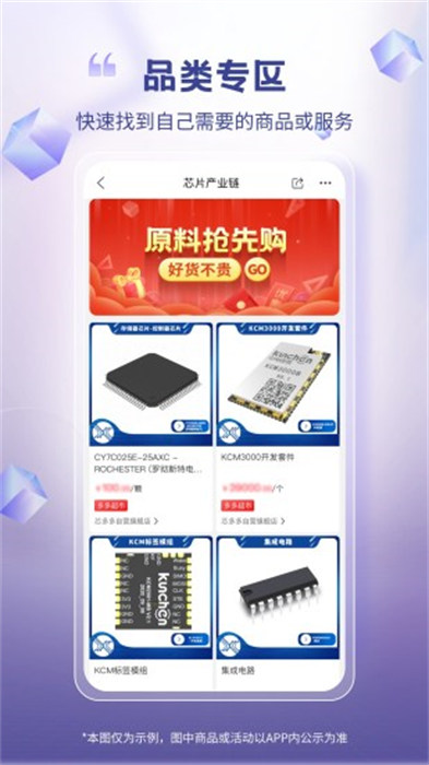 芯多多官方正版是一款全新的綜合性線上芯片電商平臺(tái),在應(yīng)用中,關(guān)于各種的芯片產(chǎn)業(yè)中各個(gè)環(huán)節(jié)和終端的儀器,在應(yīng)用中都能夠?qū)ふ业?用戶(hù)可以根據(jù)自己的需求按需購(gòu)買(mǎi),應(yīng)用功能強(qiáng)大,頁(yè)面布局簡(jiǎn)單清楚,各個(gè)版塊的分類(lèi)也是非常明確的,有需要的用戶(hù)千萬(wàn)不要錯(cuò)過(guò),快來(lái)下載體驗(yàn)吧!