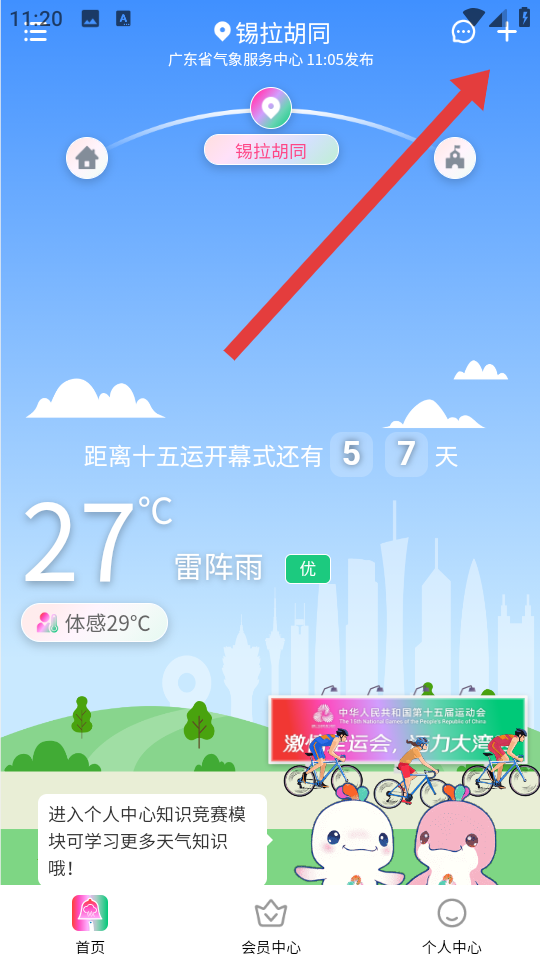 2、在我的關(guān)注頁(yè)面,點(diǎn)擊+關(guān)注地點(diǎn)選項(xiàng),進(jìn)入搜索地址界面。