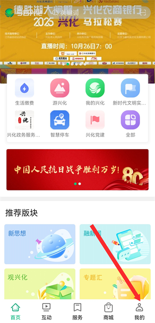 1、打開(kāi)今日興化APP首頁(yè),點(diǎn)擊底部我的,進(jìn)入個(gè)人功能頁(yè)面。