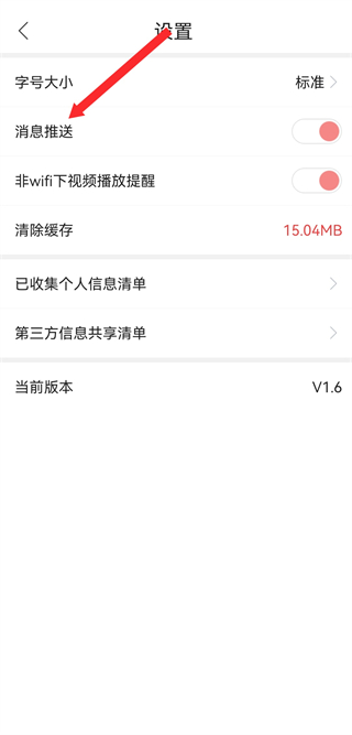 3、在設(shè)置操作界面中,找到消息推送的開(kāi)關(guān),點(diǎn)擊將其關(guān)閉。