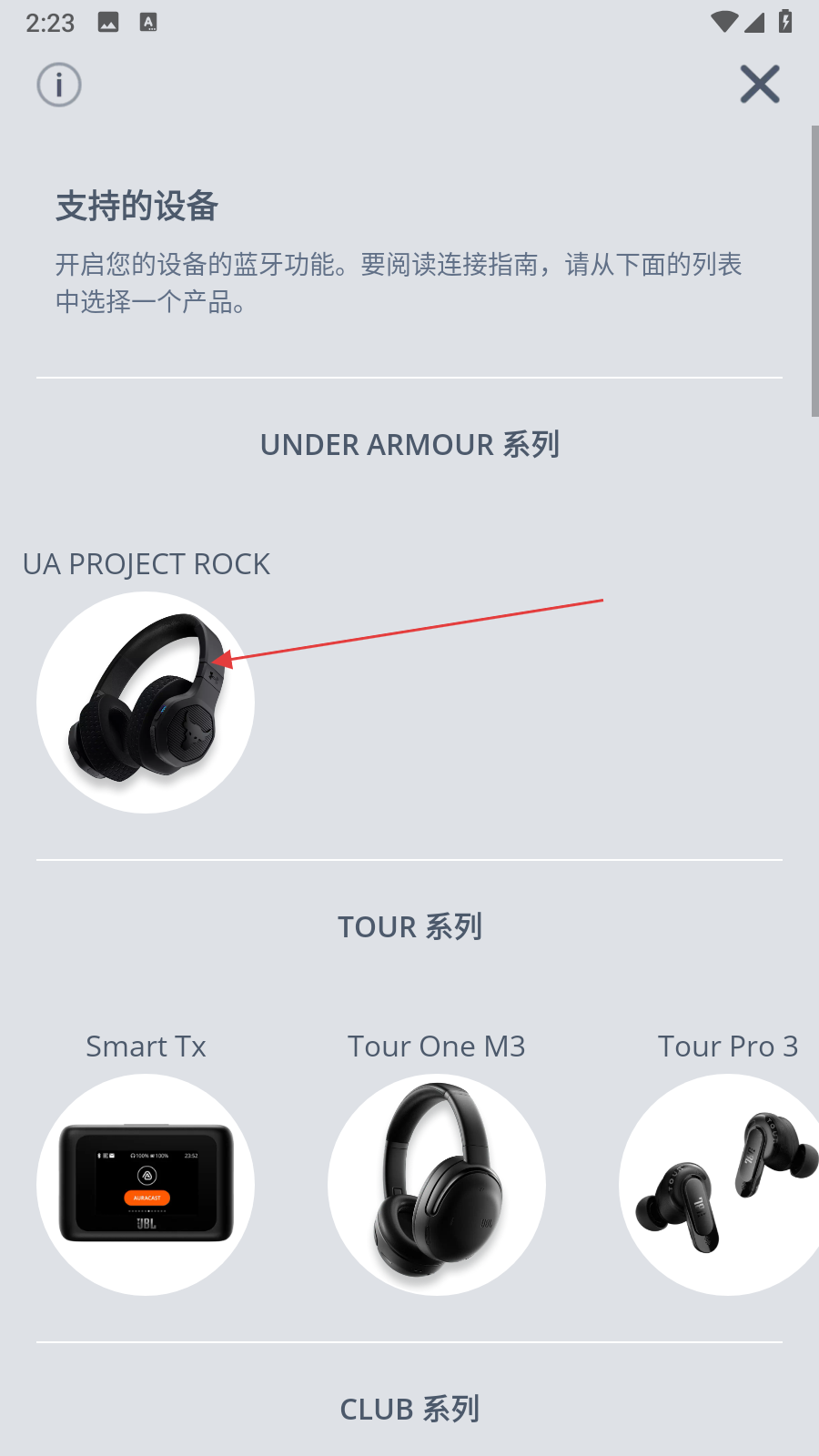 2、在支持設(shè)備列表里,找到并點(diǎn)擊對(duì)應(yīng)耳機(jī)型號(hào),進(jìn)入該耳機(jī)的連接指引頁(yè)面。