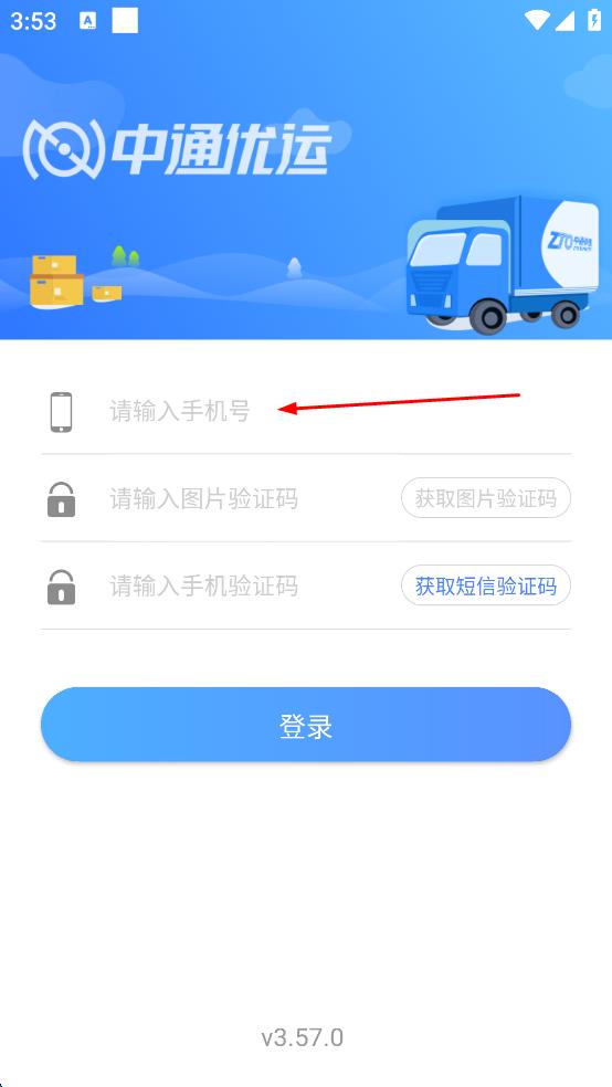 1、打開中通優(yōu)運(yùn)APP,在登錄頁面的“請(qǐng)輸入手機(jī)號(hào)”欄輸入要登錄的手機(jī)號(hào)碼。