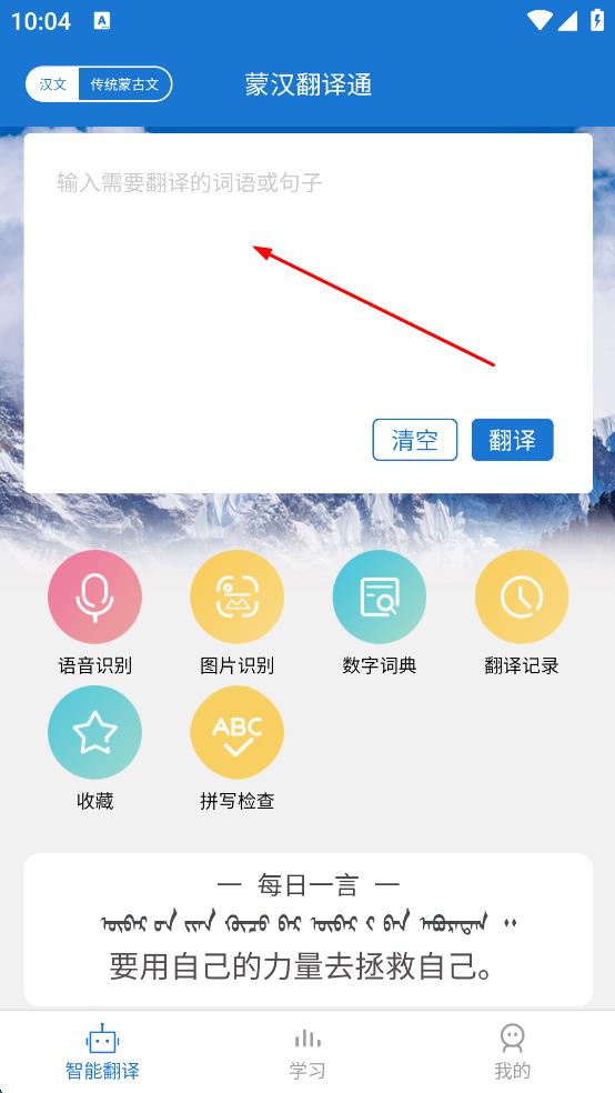 3、進(jìn)入APP主界面后,在輸入框中輸入需要翻譯的詞語或句子。