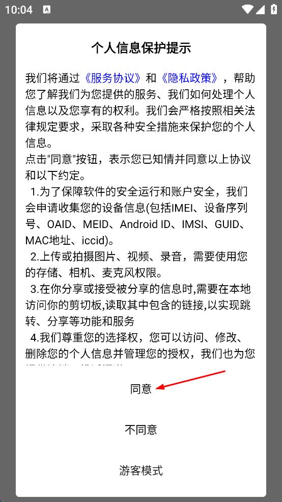 1、打開蒙漢翻譯通APP,在彈出的個(gè)人信息保護(hù)提示框中,點(diǎn)擊同意。
