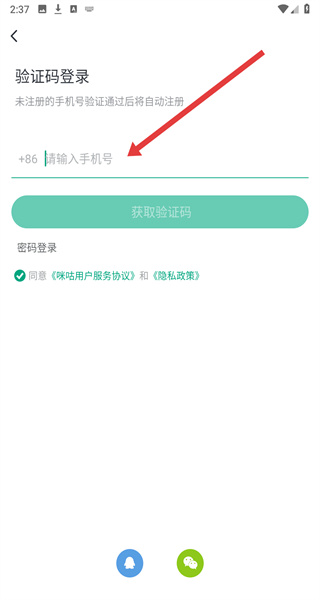3、在驗證碼登錄頁面的請輸入手機號輸入框中,填寫個人手機號碼。