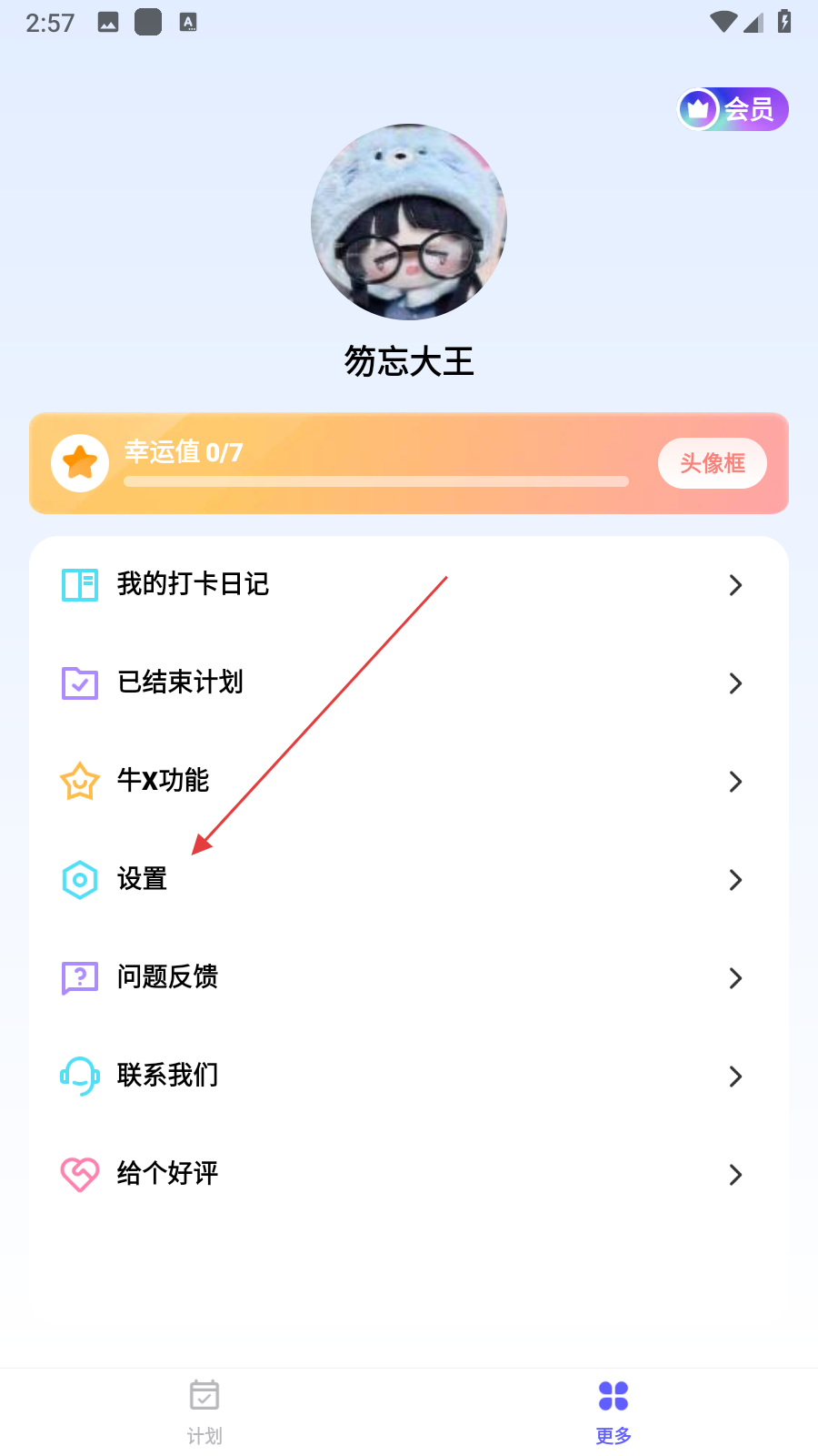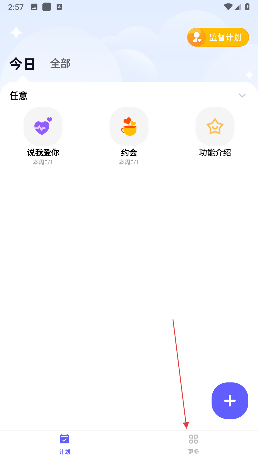1、打開小計(jì)劃應(yīng)用,在計(jì)劃頁面點(diǎn)擊底部更多,進(jìn)入個(gè)人相關(guān)頁面。