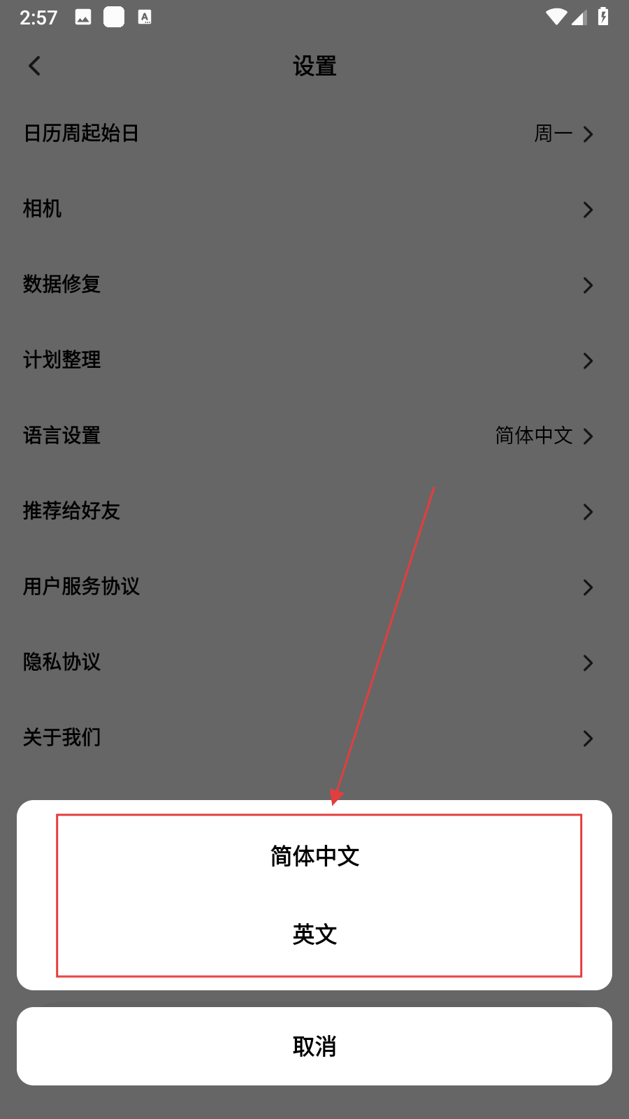 3、在設(shè)置界面中,點(diǎn)擊語言設(shè)置選項(xiàng),隨即彈出語言選擇窗口。
