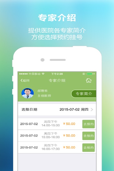 【掛號功能】提供本院全部科室普通門診和專家門診的預(yù)約掛號、實時掛號和實時叫號功能,患者只需一部手機,即可完成預(yù)約掛號并且可以隨時隨地查看叫號情況。