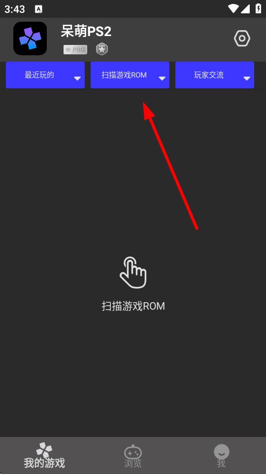 2、在界面中找到并點擊掃描游戲ROM按鈕,彈出掃描選項菜單。