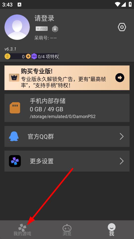 1、打開呆萌PS2模擬器,點擊底部我的游戲選項,進入游戲相關(guān)界面。