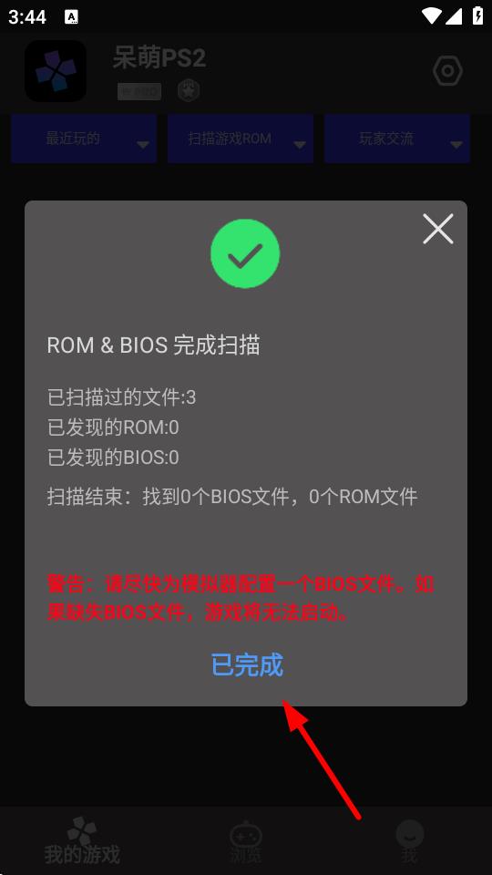 4、掃描結(jié)束后,會顯示“ROM & BIOS 完成掃描”等結(jié)果提示,點擊已完成結(jié)束掃描操作。