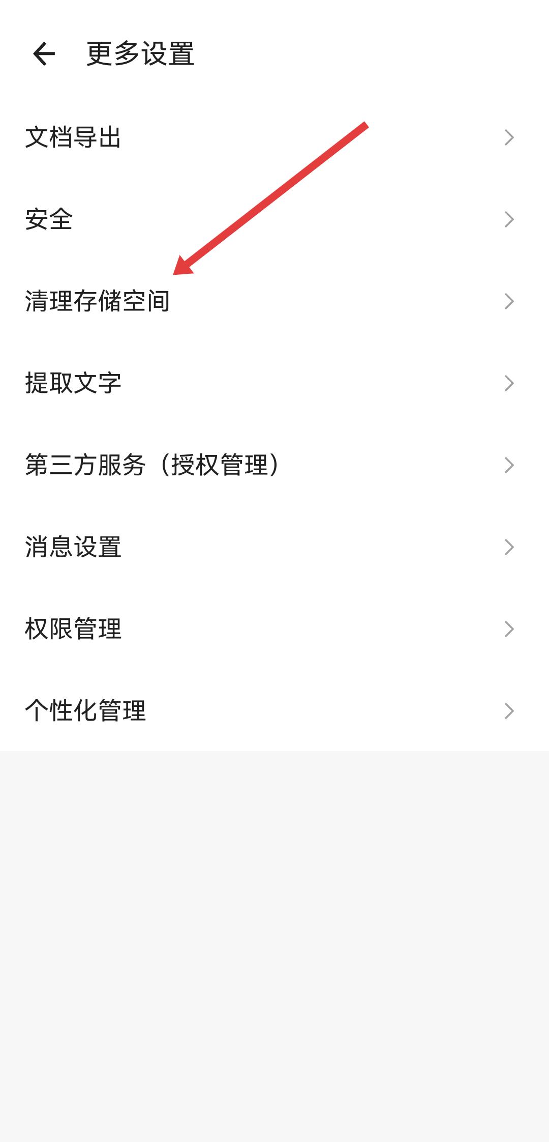3、在更多設(shè)置界面里,點(diǎn)擊清理存儲空間選項(xiàng),進(jìn)入清理存儲空間頁面。