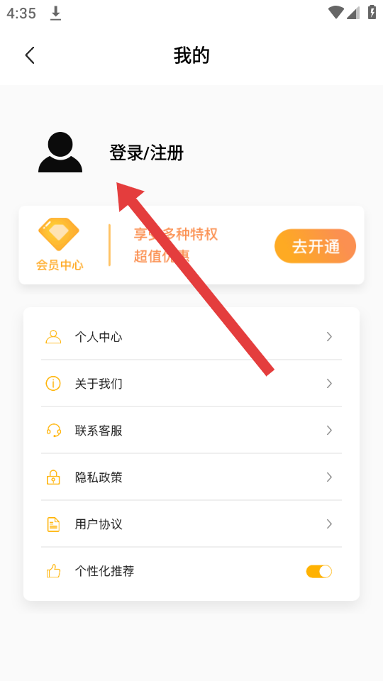 2、在我的頁面中,需要點擊登錄/注冊的選項,跳轉(zhuǎn)至登錄的界面,準(zhǔn)備選擇登錄的方式。