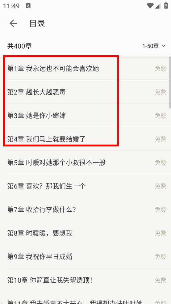 3、在目錄界面,可查看書籍章節(jié)列表,選擇對(duì)應(yīng)章節(jié)閱讀。