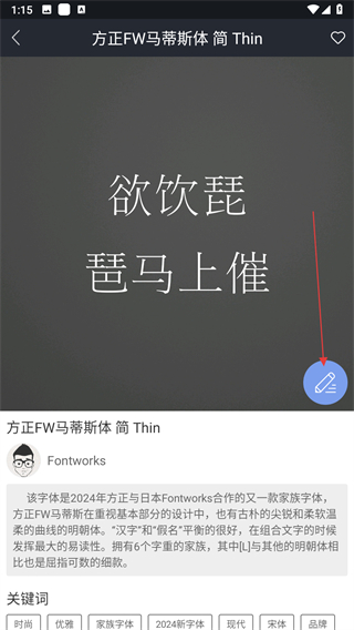 3、選中喜歡的字體后,點擊進入該字體詳情頁面,然后點擊頁面右側(cè)的編輯圖標(biāo)。