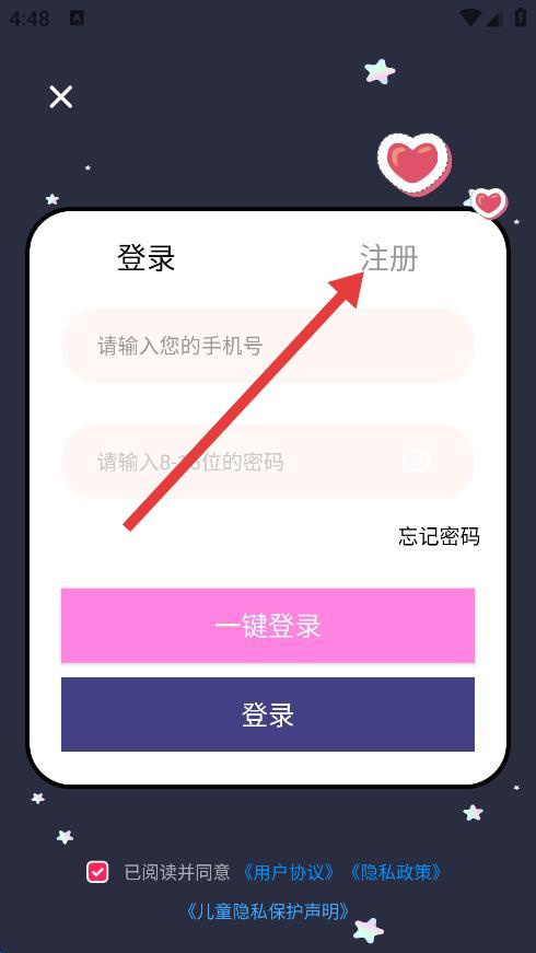 3、在彈出的登錄界面中,點(diǎn)擊右上角的注冊(cè)選項(xiàng)。