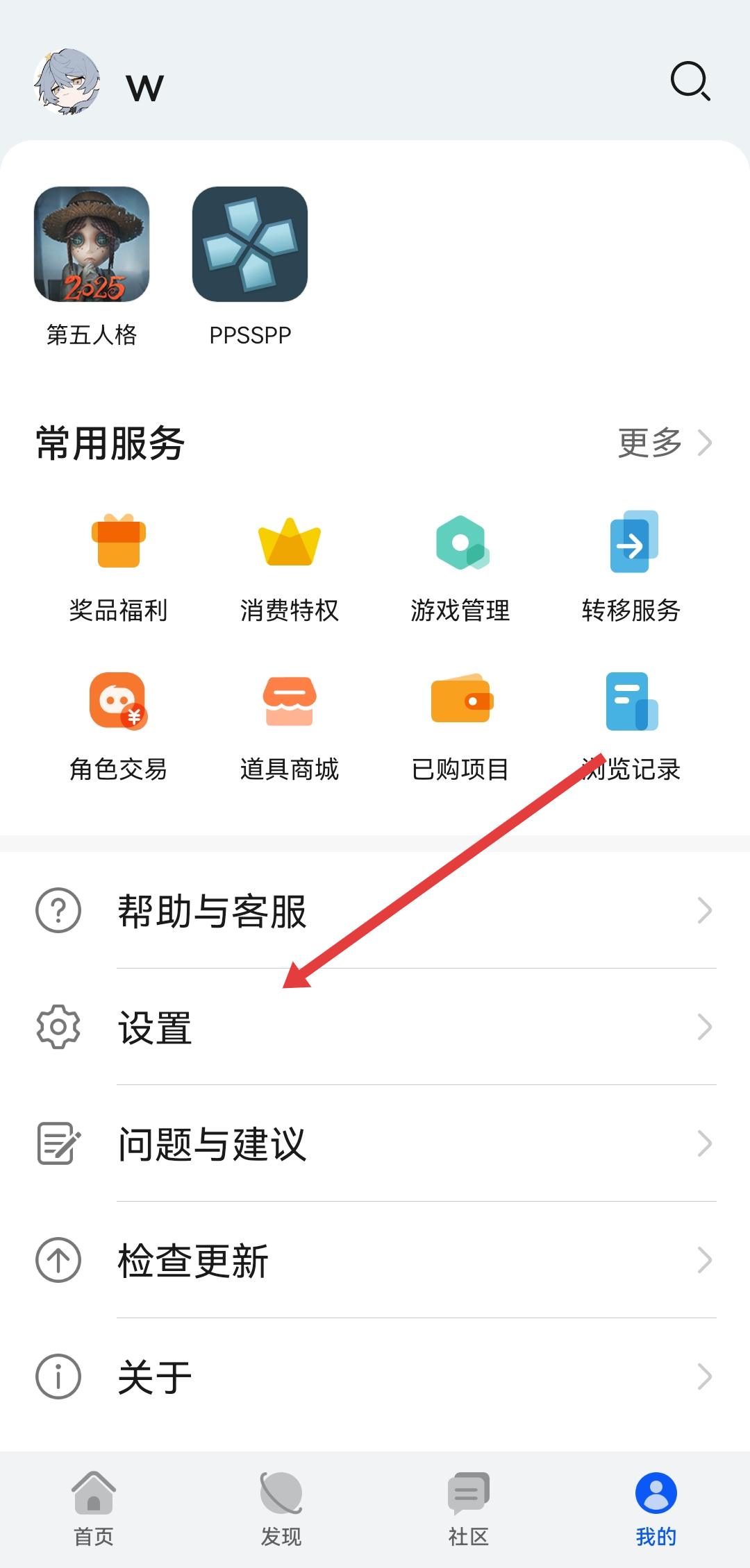 1、打開華為游戲中心APP,進(jìn)入我的頁面,找到設(shè)置的選項(xiàng)并點(diǎn)擊,進(jìn)入設(shè)置界面。