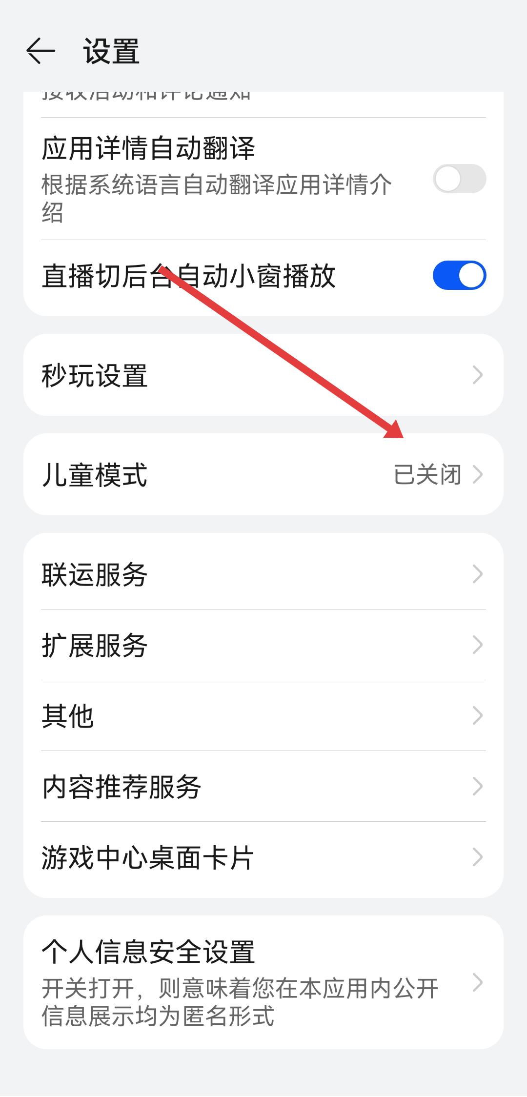 2、在設(shè)置的頁面中,找到兒童模式選項(xiàng),點(diǎn)擊進(jìn)入健康使用手機(jī)設(shè)置頁面。