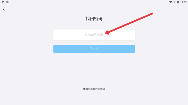 3、在跳轉(zhuǎn)到找回密碼頁面后,可以在輸入框中輸入QQ號或者郵箱進(jìn)行找回。