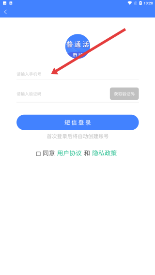 3、在登錄界面輸入手機號,獲取并填入驗證碼,勾選用戶協(xié)議和隱私政策,點擊短信登錄完成首次賬號注冊與登錄。