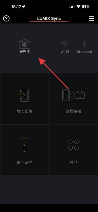 1.打開Lumix Sync應(yīng)用,點擊未連接的相機(jī)圖標(biāo),進(jìn)入相機(jī)注冊配對流程。