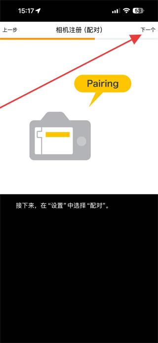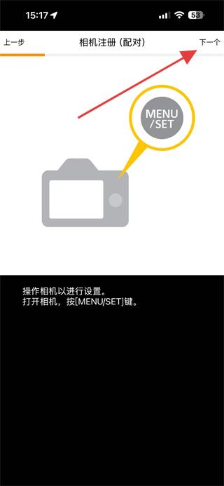 2.按照提示,操作相機(jī)按下MENU/SET鍵,然后點擊界面右上角的下一個。