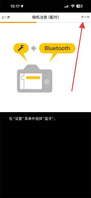 3.在相機(jī)的設(shè)置菜單中選擇藍(lán)牙選項,繼續(xù)點擊下一個。