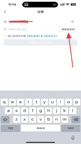 2、在注冊(cè)頁(yè)面,輸入需要注冊(cè)的手機(jī)號(hào),并點(diǎn)擊獲取驗(yàn)證碼。