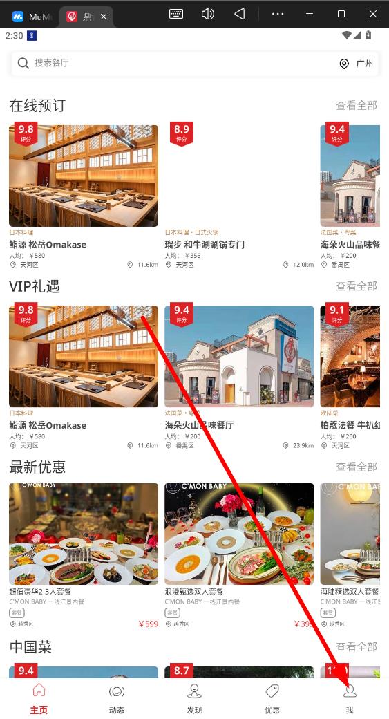 1、打開鼎食聚app,點(diǎn)擊底部導(dǎo)航欄最右側(cè)的我進(jìn)入個(gè)人頁面。