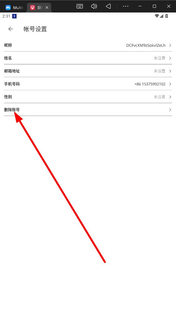3、進(jìn)入帳號(hào)設(shè)置頁面后,點(diǎn)擊刪除賬號(hào)選項(xiàng)。