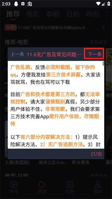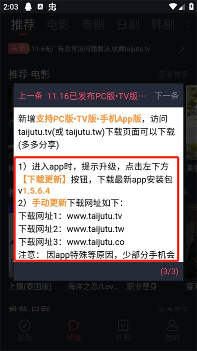 2、在公告中點(diǎn)擊【下一條】這樣就可以看到最后一頁的下載方式還有最新的下載地址;