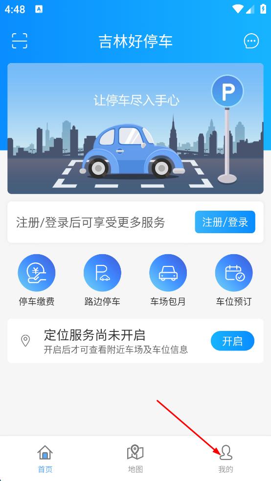 1、打開吉林好停車軟件,在底部導(dǎo)航欄找到“我的”選項,點擊該選項,進入個人頁面。