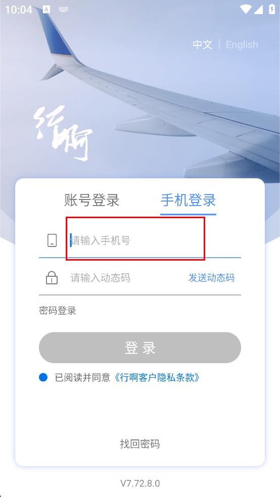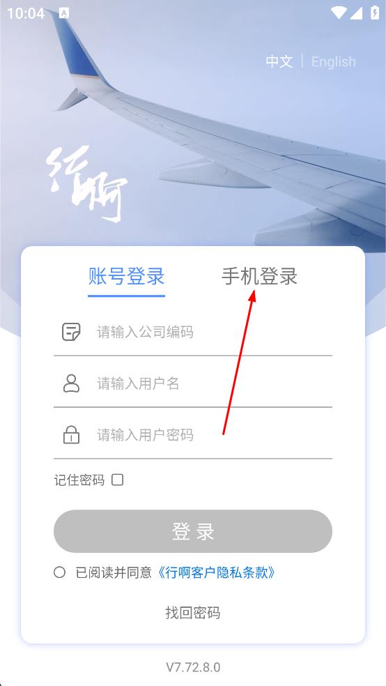 1、打開行啊軟件,在登錄界面點(diǎn)擊“手機(jī)登錄”選項(xiàng),切換到手機(jī)登錄頁面。