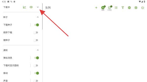 1、啟動adm的APP,在首頁內(nèi)點擊左側(cè)向下的圖標。