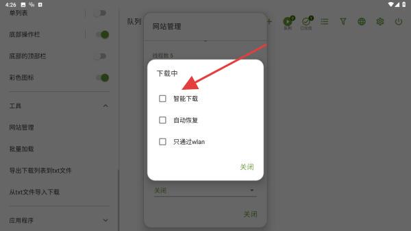 4、再向下滑動,找到并下載中的按鈕,在下載中的界面內(nèi)選擇智能下載即可。