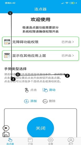 -點(diǎn)擊或滑動(dòng)位置后點(diǎn)擊開啟按鈕開啟連點(diǎn)器。