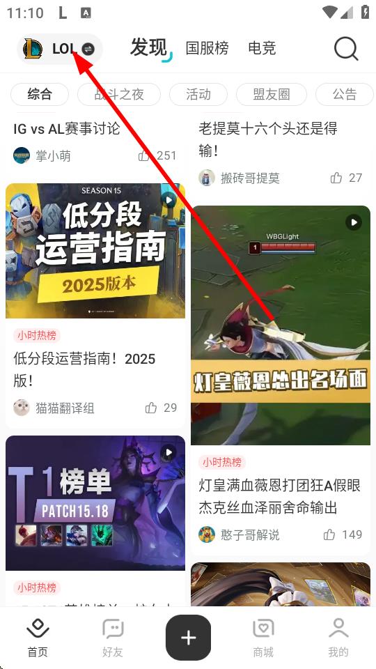 1、打開掌上英雄聯(lián)盟APP,點(diǎn)擊左上角的LOL圖標(biāo)。