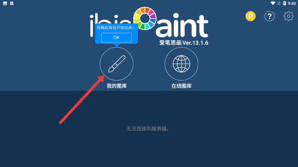 3、完成前期設(shè)置后,在ibisPaint主界面點擊我的圖庫圖標,準備進入個人繪畫作品管理頁面開始使用。