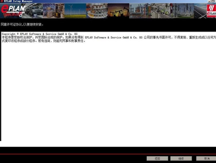 2、可用程序里有兩個程序供大家選擇,小編這里選擇EPLAN P8,點擊繼續(xù),如下圖出現(xiàn)協(xié)議,在我接受前打勾