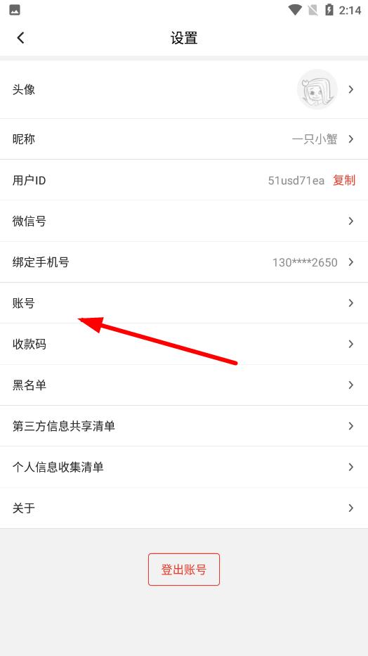 2、進(jìn)入設(shè)置界面后,在列表中找到賬號(hào)選項(xiàng)并點(diǎn)擊進(jìn)入。