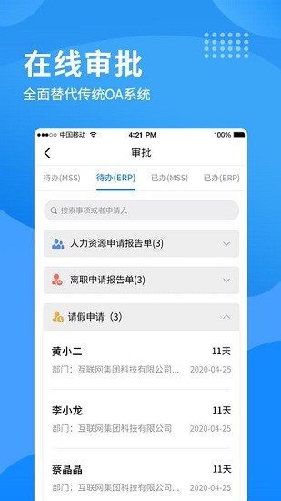4、在線審批,全面替代傳統(tǒng)oa系統(tǒng),為用戶帶來辦公便捷。
