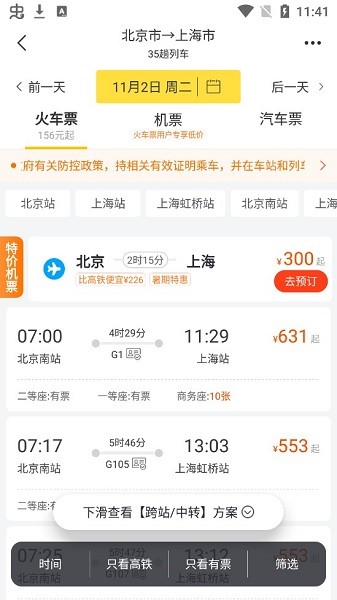 輸入車次或航班,查看車次和航班的出發(fā)安排;