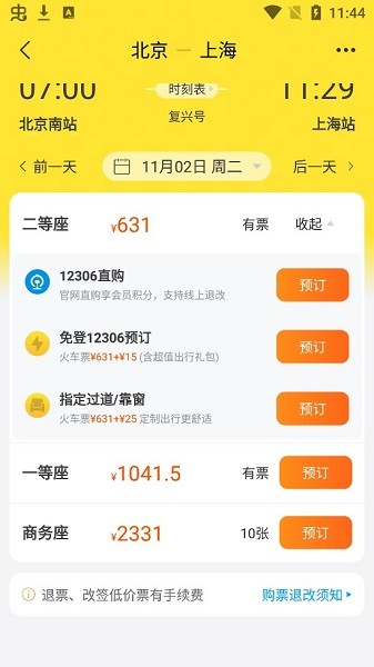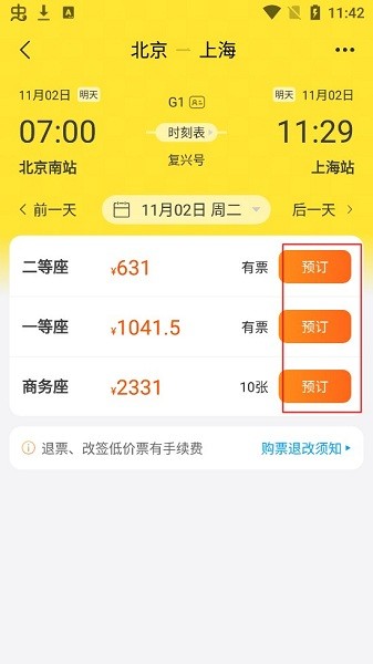 3、進入車票選擇頁面,可根據(jù)自身時間安排和出行預(yù)算來選擇想要的車次,確定后點擊該躺車次信息