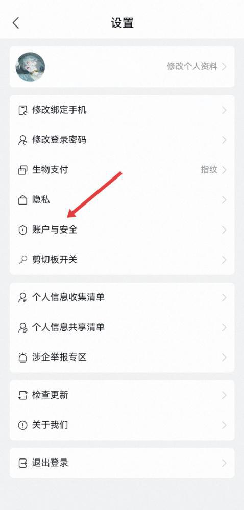 2、在設(shè)置頁面,點擊賬戶與安全的選項,進入賬戶安全相關(guān)設(shè)置。