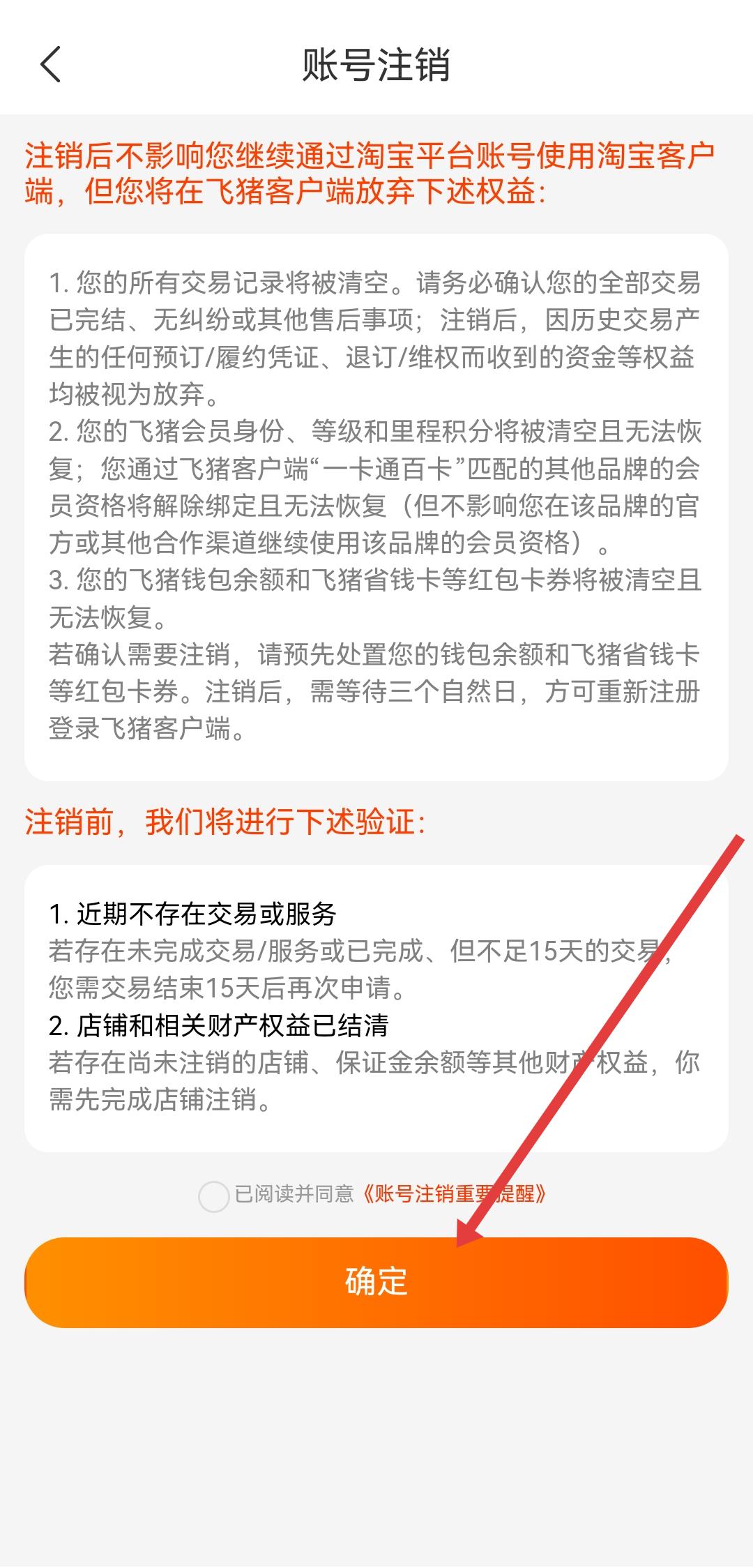 4、在賬號注銷的頁面,仔細(xì)閱讀注銷權(quán)益放棄說明與驗證要求后,點擊確定完成注銷操作。